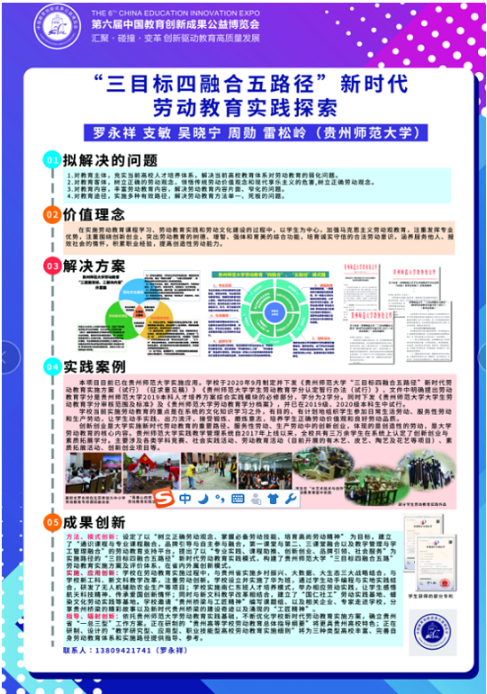 成果后期研究获批贵州省2020年教育科学规划重点课题。研制的《贵州高等学校劳动教育课程指导纲要》包括一部总纲,省直属本科院校和地方本科院校两种类型,为贵州省高校开展劳动教育提供借鉴与指导。